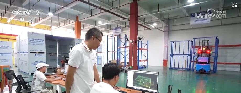 在深圳一家激光雷达的研发部,研发人员正在对多台智能物流搬运机器人进行调试。研发人员和记者说,随着搬运机器人在室外场景的应用慢慢的变多,激光雷达作为机器人的感知设备,能让机器人在各种复杂场景下精准定位,导航和避障。