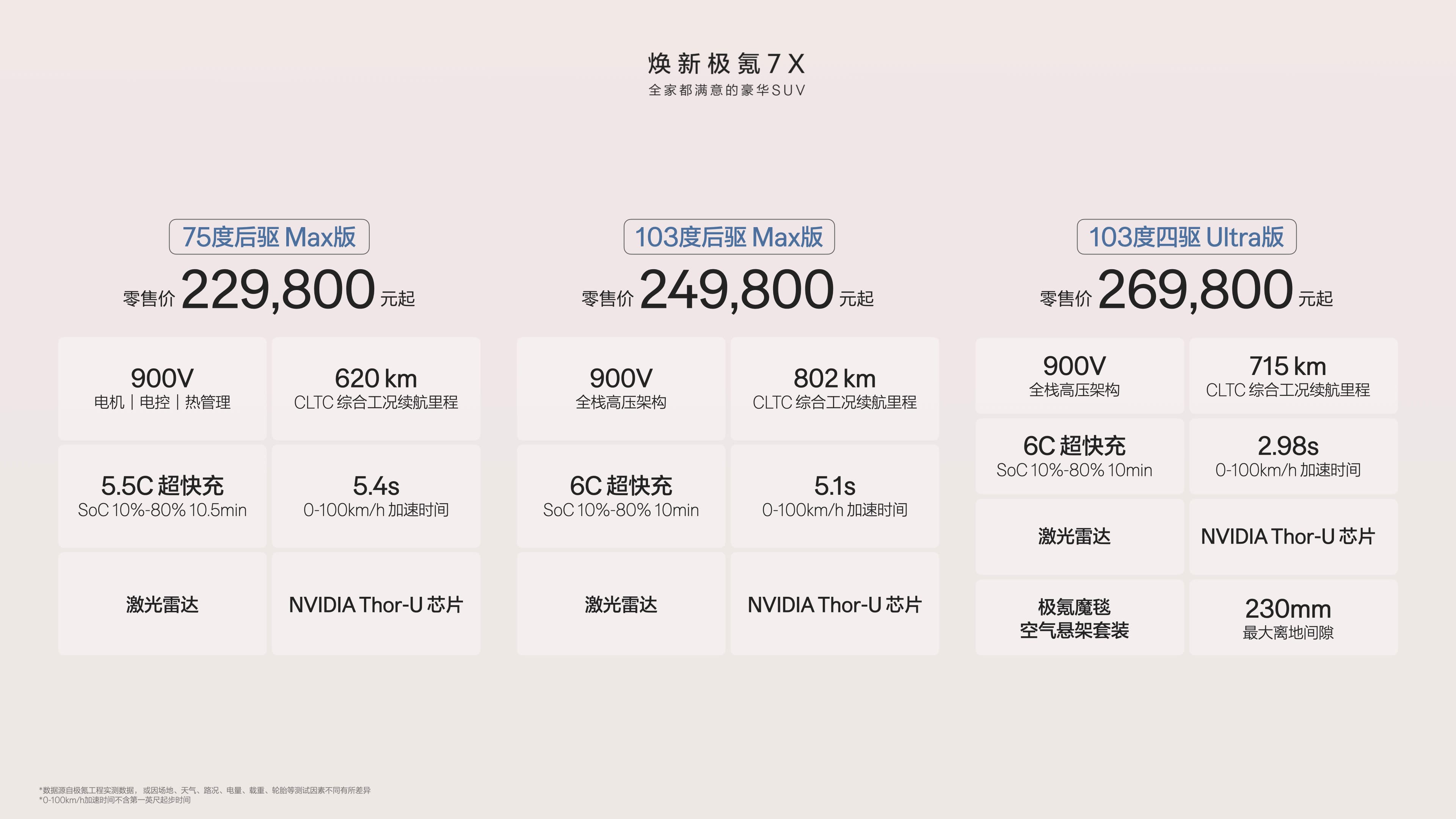 纯电车的核心痛点永远是续航和补能,极氪7X直接用900V高压架构给出了“双解法”。要知道,现在很多30万级车型还在用800V架构,极氪直接把900V做到全系标配,诚意很足。