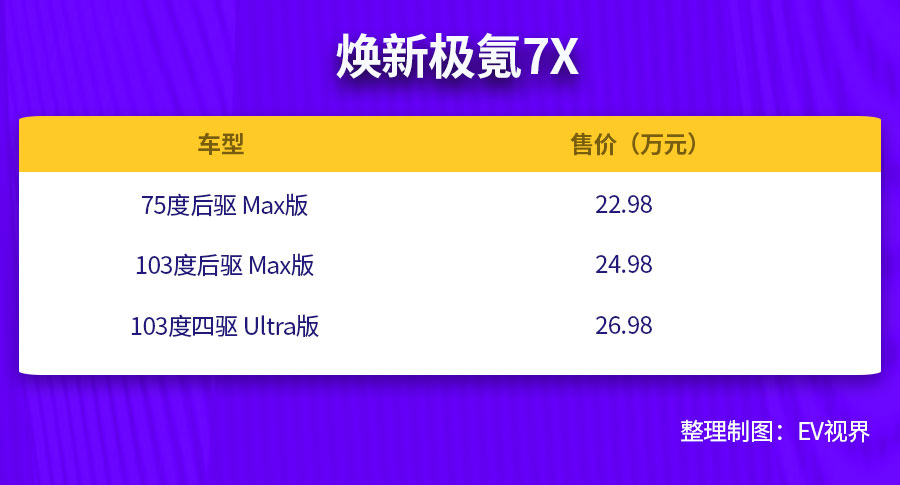 10月28日,焕新极氪7X正式上市,3款车型以22.98-26.98万元的官方价入市,叠加限时权益后门槛下探至21.98万元。
